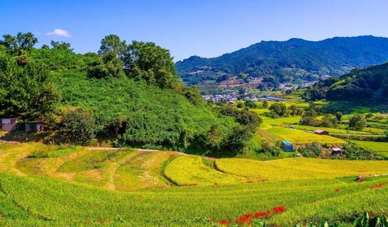 奈良県明日香村にある稲渕棚田は、日本の棚田百選に選ばれた美しい景観が広がる場所。300枚以上の水田と畑によって形成され、農村の原風景を強く残しています。春には黄色い菜の花、秋には赤い彼岸花が咲き、四季折々の花々が楽しめますよ。棚田の北側にある棚田展望台からは、稲渕棚田を一望することができます。平安時代から室町時代に開墾されたと言われる稲渕棚田。いにしえから受け継がれた美しい里山の景観に心揺さぶられること間違いなしです。