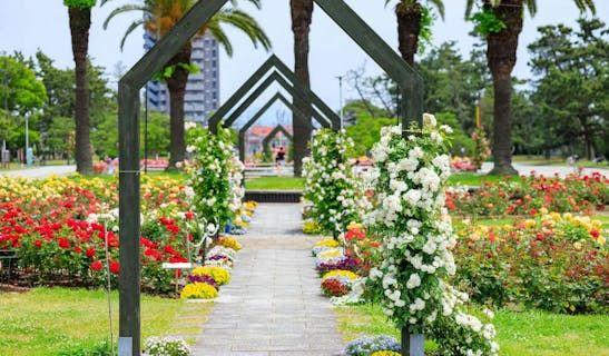 浜寺公園でまず見るべきは、バラ庭園エリア。300種6500株ものバラが咲きほこり、色とりどりのバラを観賞できます。バラ庭園に咲くバラは、化学農薬を使用しない栽培が行われているため、体に害なく安心して散策できるのが良いポイントです。また、園内には日本庭園風のバラ園や、西洋の庭園をモチーフにしたエリアなどがあり、バラ園だけでも違った雰囲気を楽しめますよ。春は5月上旬から6月上旬、秋には10月上旬から11月上旬に咲きほこるバラを見ることができます!
