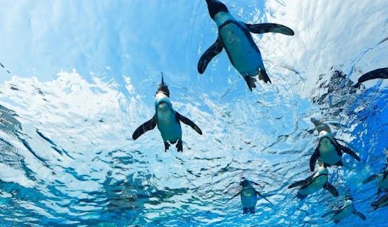 約50羽のペンギンが暮らすサンシャイン水族館では、まるで空を飛ぶように泳ぐペンギンを見ることができる「天空のペンギン」というコーナーがあります。都会の真ん中に建つサンシャイン水族館ならではの世界です。高層ビルの間をペンギンが泳ぐ姿はきれいで不思議な気持ちにさせられます。地面を歩いたり、泳いでいる姿を横から見るのとはまた異なる、下から見るかわいいペンギンの姿を見ることができます。