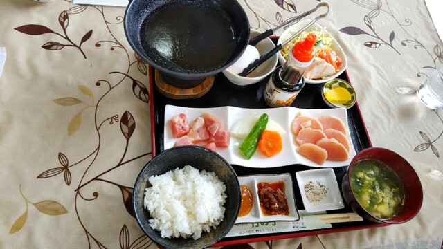鶏肉・鶏卵生産日本第2位の出水市が生み出した新グルメです!出水市の鶏肉と鶏卵が同時に楽しめる定食で、メインは鶏肉のステーキと卵かけご飯。ステーキは自分で焼く形なので焼き加減を調節できるのが嬉しいところです。また、ステーキはもも肉と胸肉の2種盛りなので、しっかり味わって味の違いを感じてみてくださいね!